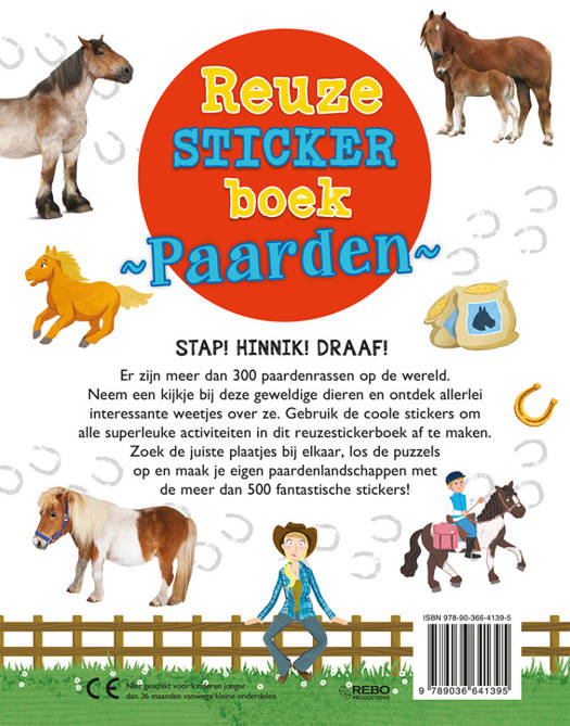 Er zijn meer dan 400 paardenrassen op de wereld. Neem een kijkje bij deze geweldige dieren en ontdek allerlei interessante weetjes over ze. Gebruik de coole stickers om alle superleuke activiteiten in dit reuzestickerboek af te maken. Zoek de juiste plaatjes bij elkaar, los de puzzels op en maak je eigen paardenlandschappen met de meer dan 500 fantastische stickers!