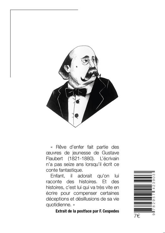 A l'occasion du 200e anniversaire de la naissance de Gustave Flaubert nous avons décidé de remettre en avant ce court récit de jeunesse qui s'inclue autant dans la Littérature classique que dans les Littératures de l'Imaginaire ainsi que d'y ajouter la postface de Françoise Cespedes professeur certifiée de Lettres Classique. « Rêve d'enfer fait partie des oeuvres de jeunesse de Gustave Flaubert (1821-1880). L'écrivain n'a pas seize ans lorsqu'il écrit ce conte fantastique. Enfant, il adorait qu'on lui raconte des histoires. Et des histoires, c'est lui qui va très vite en écrire pour compenser certaines déceptions et désillusions de sa vie quotidienne. » Extrait de la postface par F. Cespedes