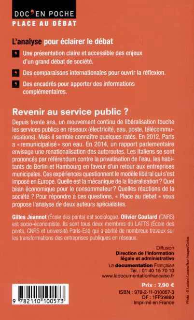Depuis trente ans, un mouvement continu de libéralisation touche les services publics en réseaux (électricité, eau, poste, télécommunications). Mais il semble connaître quelques ratés. En 2012, Paris a « remunicipalisé » son eau. En 2014, un rapport parlementaire envisage une renationalisation des autoroutes. Les Italiens se sont prononcés par référendum contre la privatisation de l'eau, les habitants de Berlin et Hambourg en faveur d'un retour aux entreprises municipales. Ces expériences questionnent le modèle libéral qui s'est imposé en Europe. Quelle est la mécanique de la libéralisation ? Quel bilan économique pour le consommateur ? Quelles réactions de la société ? Pour répondre à ces questions, « Place au débat » vous propose l'analyse de deux auteurs spécialistes.