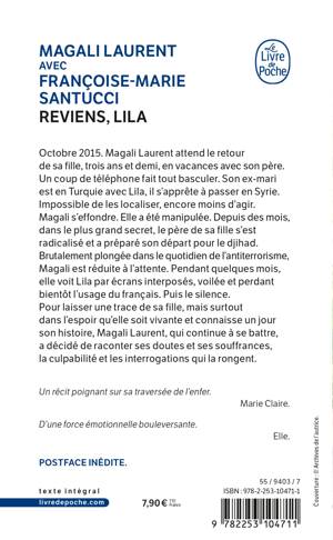 Octobre 2015. Magali Laurent attend le retour de sa fille, trois ans et demi, en vacances avec son père. Un coup de téléphone fait tout basculer. Son ex-mari est en Turquie avec Lila, il s’apprête à passer en Syrie. Impossible de les localiser, encore moins d’agir. Magali s’effondre. Elle a été manipulée. Depuis des mois, dans le plus grand secret, le père de sa fille s’est radicalisé et a préparé son départ pour le djihad. Brutalement plongée dans le quotidien de l’antiterrorisme, elle est réduite à l’attente. Pendant quelques mois, elle voit Lila par écrans interposés, voilée et perdant bientôt l’usage du français. Puis le silence.