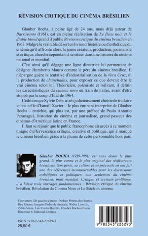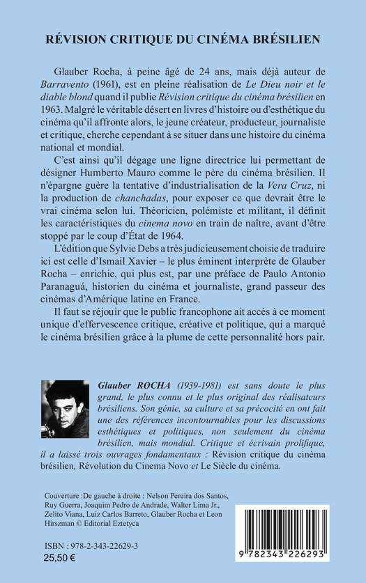 Glauber Rocha, à peine âgé de 24 ans, mais déjà auteur de Barravento (1961), est en pleine réalisation de Le Dieu noir et le diable blond quand il publie Révision critique du cinéma brésilien en 1963. Malgré le véritable désert en livres d’histoire ou d’esthétique du cinéma qu’il affronte alors, le jeune créateur, producteur, journaliste et critique, cherche cependant à se situer dans une histoire du cinéma national et mondial. C’est ainsi qu’il dégage une ligne directrice lui permettant de désigner Humberto Mauro comme le père du cinéma brésilien. Il n’épargne guère la tentative d’industrialisation de la Vera Cruz, ni la production de chanchadas, pour exposer ce que devrait être le vrai cinéma selon lui. Théoricien, polémiste et militant, il définit les caractéristiques du cinema novo en train de naître, avant d’être stoppé par le coup d’État de 1964. L’édition que Sylvie Debs a très judicieusement choisie de traduire ici est celle d’Ismail Xavier_ le plus éminent interprète de Glauber Rocha _ enrichie, qui plus est, par une préface de Paulo Antonio Paranaguá, historien du cinéma et journaliste, grand passeur des cinémas d’Amérique latine en France.