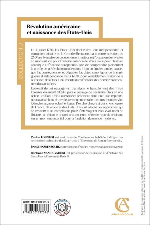 Loin de se cantonner à un récit érudit , linéaire et descriptif de la Révolution américaine, cet ouvrage collectif propose une série de regards et de perspectives pour tenter de rendre compte de toute la complexité de l’évènement . Il décloisonne également cet évènement dans l’espace et dans le temps en prenant aussi en considération les perspectives continentales et atlantiques et en allant jusqu’à l’année 1800 . Une partie importante du livre est enfin consacrée à la question de l’héritage de la Revolution américaine et de ses traces mémorielles jusqu’au début du XXIème siècle . Un ouvrage qui apportera sa pierre au corpus des titres nombreux qui vont saluer l’anniversaire des 250 ans de la Revolution américaine.