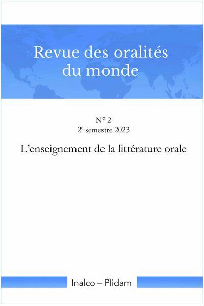 La Revue des oralités du monde a pour objectif de faire connaître les travaux de recherche dans le domaine des oralités et d’en renouveler les approches théoriques et méthodologiques. Elle publie des numéros thématiques et des varia. Le présent numéro traite de l’enseignement de la littérature orale. Les articles portent sur : la méthodologie ; l’enseignement de la littérature liée à celui d’une langue (quechua, kurde, berbère) ; l’enseignement dans une perspective aréale (Sénégal) ; l’enseignement d’un genre (proverbes bulu du Cameroun). Ils montrent ainsi les enjeux socioculturels d’un tel enseignement