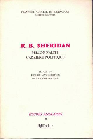 Le but de cet ouvrage est de modifier l'interpretation que les historiens ont donnee jusqu'ici de la personnalite de Sheridan. Ce ne sera plus l'auteur leger, le brillant amuseur qui tiendra, c'est le vas de le dire, le devant de la scene. Petit-fils d'un pasteur anglais, fils d'un acteur et directeur de theatre, Sheridan porte en lui-meme ces deux tendances, l'expression plaisante de la vie et son expression serieuse. L'expression plaisante lui a servi d'introduction et malheureusement a la fin l'a fait sombrer dans une dissipation ruineuse. Ce livre met en lumiere l'existence majeure de Sheridan, celle de l'homme d'etat. Madame de Chatel de Brancion divise cette carriere politique en deux parties. " Une premiere, suivant l'ordre chronologique, prend le sens vertical ". " La fulgurante percee au proces de Warren Hastings, en 1788 " et la faveur du Prince de Galles, lui conquierent la celebrite. Aux cotes de Fox il lutte contre Pitt pour faire triompher les idees de la Revolution et amener la paix avec la France. Mais il apercoit ensuite le grand malentendu de la Revolution qui, au nom de la LIBERTE, aboutit a la TERREUR.