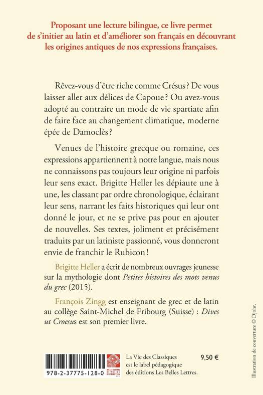 Venues de l’histoire grecque ou romaine, ces expressions appartiennent à notre langue, mais nous ne connaissons pas toujours leur origine ni parfois leur sens exact. Brigitte Heller les dépiaute une à une, les classant par ordre chronologique, éclairant leur sens, narrant les faits historiques qui leur ont donné le jour, et ne se prive pas pour en ajouter de nouvelles. Ses textes, joliment et précisément traduits par un latiniste passionné, vous donneront envie de franchir le Rubicon !