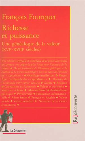plus ou moins fictif. Elle exige une approche plus large, non académique, prenant en compte la volonté de puissance des acteurs collectifs, et en particulier des États, considérés à l'échelle du monde où ils s'affrontent pour conquérir l'hégémonie. Pour vérifier cette hypothèse, l'auteur nous propose une plongée dans l'âge classique (XVIe-XVIIIe- siècles), qui a vu naître l'économie politique : il nous raconte d'une façon très vivante l'histoire du couple " richesse et puissance ", en déployant, à l'instar de Fernand Braudel, les différentes temporalités (économique, politique, culturelle...) dans l'espace géographique du monde. Cette " généalogie de la valeur " est donc à la fois une histoire du monde et une histoire de la manière dont les économistes ont perçu ce monde, et créé la science économique. Elle propose une vue neuve de l'histoire du " capitalisme " et de ses rapports avec l'État.