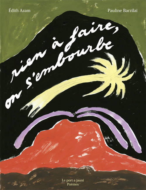 "On s’enfonce dans un corps on ne sait pas si c’est le nôtre. On mélange tout on est le cœur on est les reins les pieds les poumons les artères on est tout un tas d’os mais on ne sait plus trop ce que cela veut dire. On marche en se disant que l’on ne comprend pas. On est là au milieu du tumulte à partir se départir oublier d’où l’on vient on se dit que pour les racines la terre ne suffira pas que c’est plus bas qu’elles nous tiennent. On se ferme les yeux on s’en va au plus loin on s’enfonce dans ce corps que l’on ne connaît pas on mélange tout on est le cœur." Écrire sur l’écriture, écrire sur le corps, écrire sur le corps en écriture ; faire entendre l’oralité dans l’écrit, faire entendre le cri de la difficulté de vivre, faire entendre le corps qui s’exprime dans l’écrit : voici le projet à l’œuvre ici. L’écriture d’Edith Azam est magnifique et politique, dramatique et humoristique. Elle se lit et s’entend à tous les âges. Elle s’oralise et s’amplifie à chaque nouvelle lecture. En écho à ces mots, Pauline Barzilaï a peint un cycle. Celui d’une lune. Ou d’un soleil. Ou d’une vie. Et nous le mettons en page dans un livre qui s’ouvre et se déroule, jusqu’à ce que la courbe de la lune, ou du soleil, ou de la vie, soit entièrement déroulée, ouverte, écrite, dessinée. Finalement ce livre devient une longue bande de poèmes qui se lèvent et se couchent. Rien à faire, on s'embourbe.