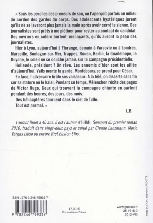 « Sous les perches des preneurs de son, on l'aperçoit parfois au milieu du cordon des gardes du corps. Des adolescents hystériques jurent qu'ils ne se laveront plus jamais la main après avoir serré la sienne. Des journalistes sont prêts à me piétiner pour rester au contact du candidat. Des ouvriers en colère hurlent, menaçants, qu'ils auront la peau des journalistes.