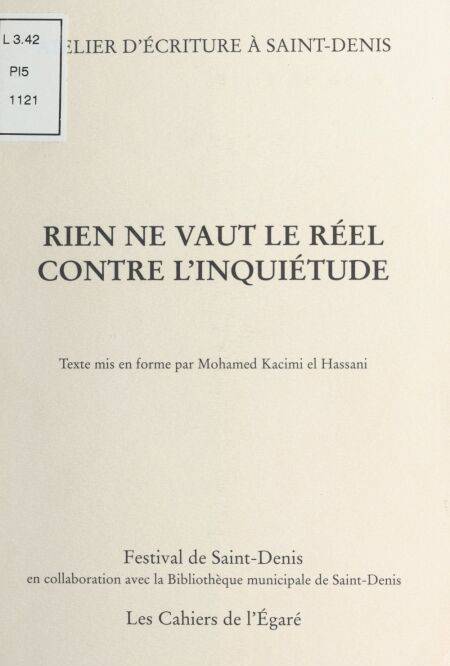 Rien ne vaut le réel contre l'inquiétude : Atelier d'écriture à Saint-Denis EBOOK