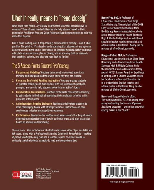 Call it close reading, call it deep reading, call it analytic reading--call it what you like. The point is, it's a level of understanding that students of any age can achieve with the right kind of instruction. In Rigorous Reading, Nancy Frey and Doug Fisher articulate an instructional plan so clearly, and so squarely built on research, that teachers, schools, and districts need look no further: