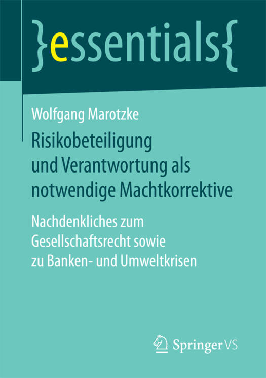 In diesem essential werden Asymmetrien von Herrschaft und Risikobeteiligung näher beleuchtet und bewertet. Der Autor Wolfgang Marotzke befasst sich mit grundlegenden gesellschaftsrechtlichen Fragen, mit den Ursachen von Banken- und Finanzmarktkrisen sowie mit der Eingehung von Umweltrisiken zulasten künftiger Generationen. Das Buch gibt eine Fülle von Denkanstößen zu Schlüsselfragen unserer Gesellschaft und erörtert die Möglichkeiten des Rechtssystems, steuernd einzugreifen.