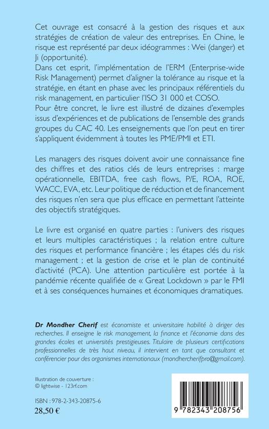 Cet ouvrage est consacré à la gestion des risques et aux stratégies de création de valeur des entreprises. Les managers des risques doivent avoir une connaissance fine des chiffres et des ratios clés de leurs entreprises. Leur politique de réduction et de financement des risques n'en sera que plus efficace en permettant l'atteinte des objectifs stratégiques : pour cela, il s'agira d'examiner l'univers des risques et leurs multiples caractéristiques, la relation entre culture des risques et performance financière, les étapes clés du risk management, enfin la gestion de crise et le plan de continuité d'activité (PCA).