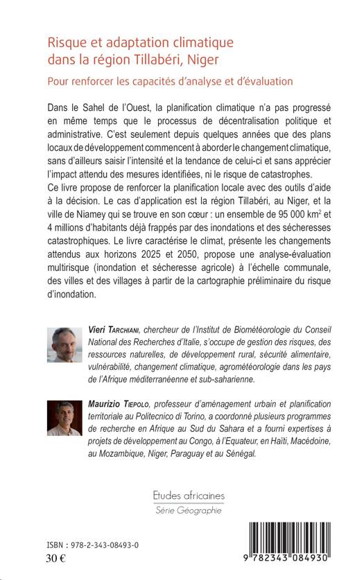 Dans le Sahel de l'Ouest, la planification climatique n'a guère progressé. Cet ouvrage propose de renforcer la planification locale avec des outils d'aide à la décision. Le cas d'application est la région de Tillabéri au Niger, avec la ville de Niamey en son coeur : 95000 km2 et 4 millions d'habitants, déjà frappés par des inondations et des sécheresses catastrophiques. Le livre caractérise le climat, présente les changements attendus aux horizons 2025 et 2050.