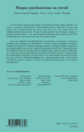 Les travailleurs perçoivent de plus en plus leur travail comme nuisible à la santé. Les "risques et troubles psychosociaux" sont restés pendant longtemps peu encadré par le droit du travail et de la Sécurité Sociale. Après une approche interdisciplinaire, l'ouvrage étudie comment les systèmes juridiques des pays d'Europe du Sud appréhendent les risques psychosociaux au travail. La question de la reconnaissance d'un droit à la protection de la santé mentale au travail est posée ainsi que celle de la définition juridique des "risques psychosociaux".