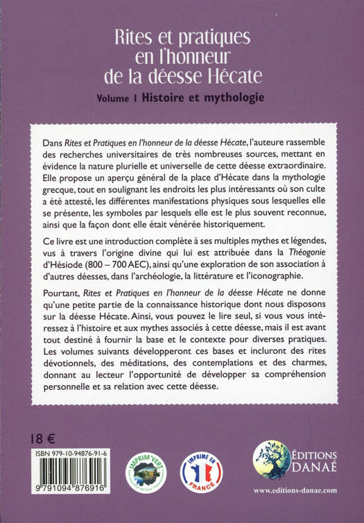 Dans Rites et Pratiques en l'honneur de la déesse Hécate, l'auteure rassemble des recherches universitaires de très nombreuses sources, mettant en évidence la nature plurielle et universelle de cette déesse extraordinaire. Elle propose un aperçu général de la place d'Hécate dans la mythologie grecque, tout en soulignant les endroits les plus intéressants où son culte a été attesté, les différentes manifestations physiques sous lesquelles elle se présente, les symboles par lesquels elle est le plus souvent reconnue, ainsi que la façon dont elle était vénérée historiquement. Ce livre est une introduction complète à ses multiples mythes et légendes, vus à travers l'origine divine qui lui est attribuée dans la Théogonie d'Hésiode (800- 700 AEC), ainsi qu'une exploration de son association à d'autres déesses, dans l'archéologie, la littérature et l'iconographie. Pourtant, Rites et Pratiques en l'honneur de la déesse Hécate ne donne qu'une petite partie de la connaissance historique dont nous disposons sur la déesse Hécate. Ainsi, vous pouvez le lire seul, si vous vous intéressez à l'histoire et aux mythes associés à cette déesse, mais il est avant tout destiné à fournir la base et le contexte pour diverses pratiques. Les volumes suivants développeront ces bases et inclueront des rites dévotionnels, des méditations, des contemplations et des charmes, donnant au lecteur l'opportunité de développer sa compréhension personnelle et sa relation avec cette déesse.