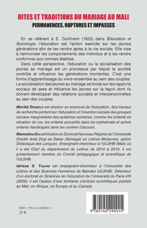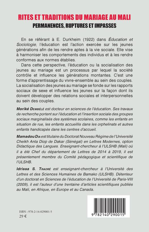 En se référant à E. Durkheim (1922) dans Éducation et Sociologie, l'éducation est l'action exercée sur les jeunes générations afin de les rendre aptes à la vie sociale. Elle vise à harmoniser les comportements des individus et à les rendre conformes aux normes établies. Dans cette perspective, l'éducation ou la socialisation des jeunes au mariage est un processus par lequel la société contrôle et influence les générations montantes. C'est une forme d'apprentissage du vivre-ensemble au sein des couples. La socialisation des jeunes au mariage se fonde sur les rapports sociaux de sexe et influence les jeunes sur la façon dont ils doivent développer des relations sociales et interpersonnelles au sein des couples.