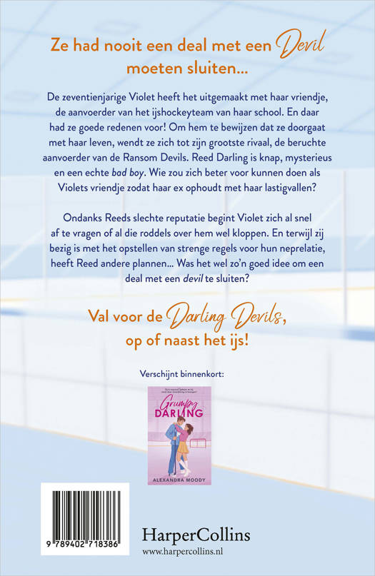 Rival Darling van Alexandra Moody is nu al een grote hit op BookTok. De zeventienjarige Violet heeft het uitgemaakt met haar vriendje, de aanvoerder van het ijshockeyteam van haar school. En daar had ze goede redenen voor! Om hem te bewijzen dat ze doorgaat met haar leven, wendt ze zich tot zijn grootste rivaal, de beruchte aanvoerder van de Ransom Devils. Reed Darling is knap, mysterieus en een echte bad boy. Wie zou zich beter voor kunnen doen als Violets vriendje zodat haar ex ophoudt met haar lastigvallen? Ondanks Reeds slechte reputatie begint Violet zich al snel af te vragen of al die roddels over hem wel kloppen. En terwijl zij bezig is met het opstellen van strenge regels voor hun neprelatie, heeft Reed andere plannen… Was het wel zo'n goed idee om een deal met een devil te sluiten?