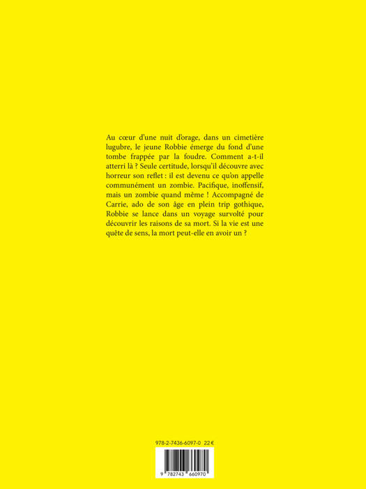 Au coeur des ténèbres d'une nuit d'orage, dans un cimetière lugubre, le jeune Robbie émerge, à sa grande surprise, du fond d'une tombe frappée par la foudre. Comment a-t-il atterri là ? Mystère. Seule certitude, lorsqu'il découvre avec horreur son reflet : il est devenu ce qu'on appelle communément un... zombie. Accompagné de Carrie, ado de son âge en plein trip gothique, Robbie va enquêter pour découvrir les raisons de sa mort. Si la vie est une poursuite de sens, la mort peut-elle en avoir un ? Une bande dessinée à la liberté et la folie uniques.