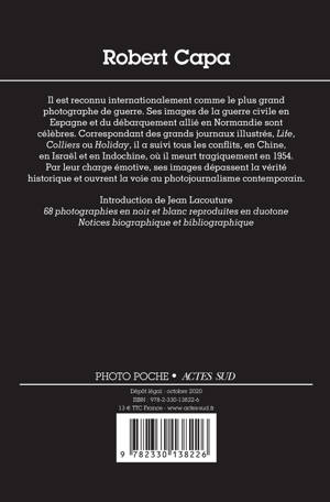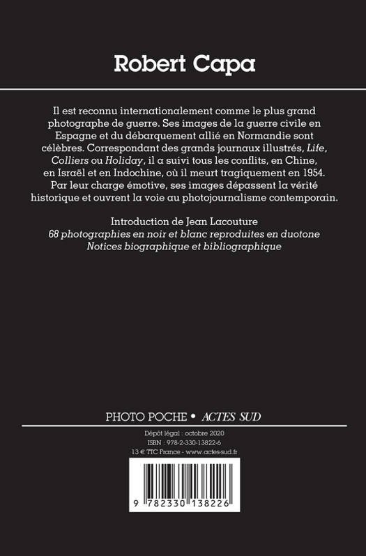 Il est reconnu internationalement comme le plus grand photographe de guerre. Ses images de la guerre civile en Espagne et du débarquement allié en Normandie sont célèbres. Correspondant des grands journaux illustrés, «Life», «Colliers» ou «Holiday», il a suivi tous les conflits, en Chine, en Israël et en Indochine, où il meurt tragiquement en 1954. Par leur charge émotive, ses images dépassent la vérité historique et ouvrent la voie au photojournalisme contemporain. Introduction de Jean Lacouture 68 photographies en noir et blanc Notices biographique et bibliographique