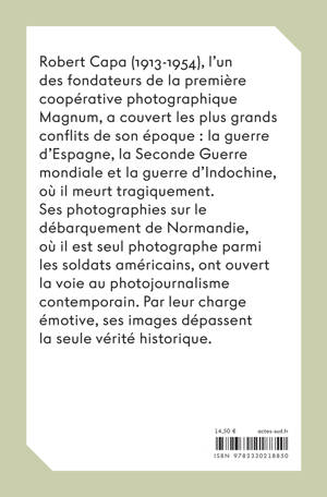Robert Capa (1913-1954), l'un des fondateurs de la première coopérative photographique Magnum, a couvert les plus grands conflits de son époque : la guerre d'Espagne, la Seconde Guerre mondiale et la guerre d'Indochine, où il meurt tragiquement. Ses photographies sur le débarquement de Normandie, où il est seul photographe parmi les soldats américains, ont ouvert la voie au photojournalisme contemporain. Par leur charge émotive, ses images dépassent la seule vérité historique.