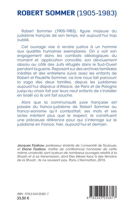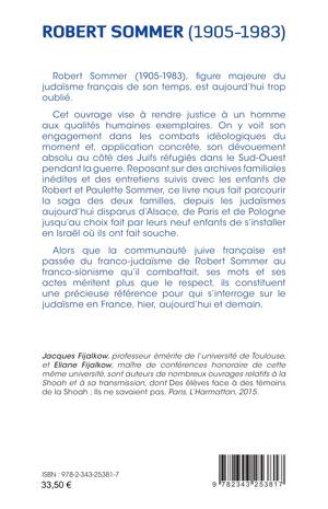 Robert Sommer (1905-1983), figure majeure du judaïsme français de son temps, est aujourd’hui trop oublié. Cet ouvrage vise à rendre justice à un homme aux qualités humaines exemplaires. On y voit son engagement dans les combats idéologiques du moment et, application concrète, son dévouement absolu au côté des Juifs réfugiés dans le Sud-Ouest pendant la guerre. Reposant sur des archives familiales inédites et des entretiens suivis avec les enfants de Robert et Paulette Sommer, ce livre nous fait parcourir la saga des deux familles, depuis les judaïsmes aujourd’hui disparus d’Alsace, de Paris et de Pologne jusqu’au choix fait par leurs neuf enfants de s’installer en Israël où ils ont fait souche. Alors que la communauté juive française est passée du franco-judaïsme de Robert Sommer au franco-sionisme qu’il combattait, ses mots et ses actes méritent plus que le respect, ils constituent une précieuse référence pour qui s’interroge sur le judaïsme en France, hier, aujourd’hui et demain.