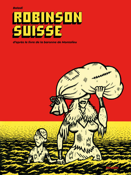 Baladi découvre tout d’abord les Robinsons suisses sous forme de série télé durant les années 70, puis tombe par hasard bien des années plus tard sur le roman à la base de la série, roman écrit en allemand par un écrivain bernois, et datant du début du 19e siècle. C’est en jouant avec l’idée d’adapter ce livre (qu’il n’a toujours pas lu!) qu’il déniche alors la traduction qu’en a fait la Baronne de Montolieu. Mais la Baronne de Montolieu ne s’est pas contentée de traduire le livre, elle en a changé certains passages jugés trop moralisateurs, et a même écrit des chapitres supplémentaires au roman. Baladi va donc décider de s’atteler à une adaptation, mais en commençant par le chapitre 37 (le premier de la suite écrite par la Baronne, vous suivez?) et en se sentant très libre (comme la Baronne!) dans son adaptation. De la matière première, il va garder la situation de base (une famille suisse doit survivre sur une île lointaine suite à un naufrage) et le charme un peu suranné des histoires d’aventure à l’ancienne; mais Baladi va surtout malaxer, transformer, trahir et transcender cette matière pour en faire une bande dessinée à la portée évidemment politique. Il faut le préciser, la paisible famille suisse craint une confrontation avec de terribles sauvages qui semblent rôder, des sauvages que certaines caricatures montrent menaçant et dangereusement enturbannés… Au niveau graphique, Baladi s’est surpassé et propose un travail en couleur rare, mélange de découpages et de couleurs directes, et réalise ainsi certaines de ses plus pages. Le livre sortira peu avant le festival BDFIL, dont Baladi est cette année l’invité d’honneur (succédant entre autres à Zep, Blutch, Frederik Peeters, Anna Sommer, etc.)
