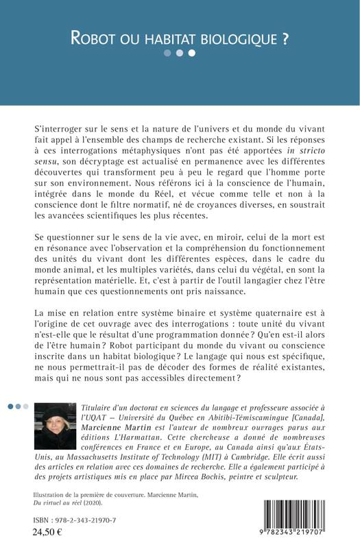 S'interroger sur l'univers et le vivant fait appel à l'ensemble des champs de recherche. Les différentes découvertes transforment peu à peu le regard que l'homme porte sur son environnement. C'est à partir de l'outil langagier que ces questionnements ont pris naissance. Mais toute unité du vivant n'est-elle que le résultat d'une programmation donnée ? Qu'en est-il alors de l'être humain ? Robot participant du monde du vivant ou conscience inscrite dans un habitat biologique ? Le langage qui nous est spécifique, ne nous permettrait-il pas de décoder des formes de réalité existantes, mais qui ne nous sont pas accessibles directement ?