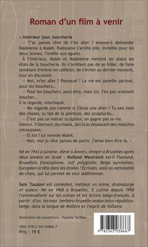 Il a presque 17 ans, son père le tance pour l'aider dans la boucherie, mais il vit pour créer des sculptures et mobiles. Il est amoureux de la jeune aide bouchère mais n'ose pas lui dire. Et puis ses parents meurent Le voilà avec la boucherie sur les bras. Et les sculptures dans la tête. Et la jeune fille dans son lit. Que faire de sa vie ? Il s'appelle Malek, elle Madeleine ; les parents, c'est Rosine et Radouane pour ce que ça change D'ailleurs, Westreich et Touzani, ont-ils écrit un roman, un scénario ou une forme hybride ?