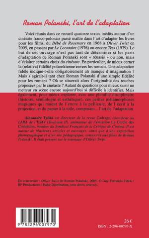 Voici réunis dans ce recueil quatorze textes inédits autour d'un cinéaste franco-polonais passé maître dans l'art d'adapter les livres pour les films, du Bébé de Rosemary en 1968 à Oliver Twist en 2005, en passant par Le Locataire (1976) ou encore Tess (1979). Le but de cet ouvrage est d'éclairer certains choix du cinéaste, de mieux cerner la (relative) fidélité polanskienne envers les romans, et de saisir un metteur en scène encore aujourd'hui si difficile à identifier.