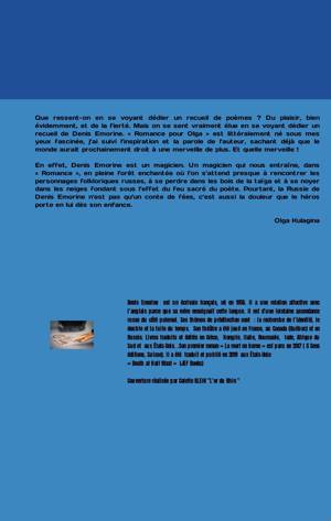 Que ressent-on en se voyant dédier un recueil de poèmes ? Du plaisir, bien évidemment, et de la fierté. Mais on se sent vraiment élue en se voyant dédier un recueil de Denis Emorine. Romance pour Olga est littéralement né sous mes yeux: fascinée, j’ai suivi l’inspiration et la parole de l’auteur, sachant déjà que le monde aurait prochainement droit à une merveille de plus. Et quelle merveille ! En effet, Denis Emorine est un magicien. Un magicien qui nous entraîne, dans Romance, en pleine forêt enchantée où l’on s’attend presque à rencontrer les personnages folkloriques russes, à se perdre dans les bois de la taïga et à se noyer dans les neiges fondant sous l’effet du feu sacré du poète. Pourtant, la Russie de Denis Emorine n’est pas qu’un conte de fées, c’est aussi la douleur que le héros porte en lui dès son enfance: Olga Kulagina