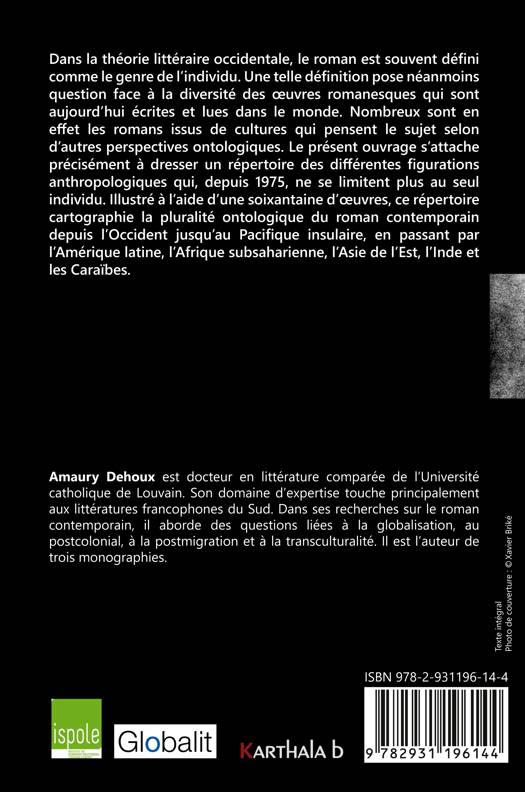 Dans la théorie littéraire occidentale, le roman est souvent défini comme le genre de l’individu. Une telle définition pose néanmoins question face à la diversité des œuvres romanesques qui sont aujourd’hui écrites et lues dans le monde. Nombreux sont en effet les romans issus de cultures qui pensent le sujet selon d’autres perspectives ontologiques. Le présent ouvrage s’attache précisément à dresser un répertoire des différentes figurations anthropologiques qui, depuis 1975, ne se limitent plus au seul individu. Illustré à l’aide d’une soixantaine d’œuvres, ce répertoire cartographie la pluralité ontologique du roman contemporain depuis l’Occident jusqu’au Pacifique insulaire, en passant par l’Amérique latine, l’Afrique subsaharienne, l’Asie de l’Est, l’Inde et les Caraïbes.