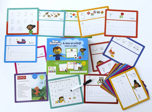 Met deze Rompompom schrijfkaarten en een uitwisbare stift leren kinderen de letters en cijfers van school schrijven. Zo leren ze bijvoorbeeld de letter van hun eigen naam of het cijfer dat hoort bij hun leeftijd! In dit leuke koffertje zitten kaarten met verschillende schrijfoefeningen met letters en cijfers. Spelenderwijs oefenen kinderen zo het lezen en schrijven van de letters en het lezen van woordjes. De schrijfkaarten zijn door de uitwisbare stift telkens opnieuw te gebruiken, dus er kan eindeloos geoefend worden!