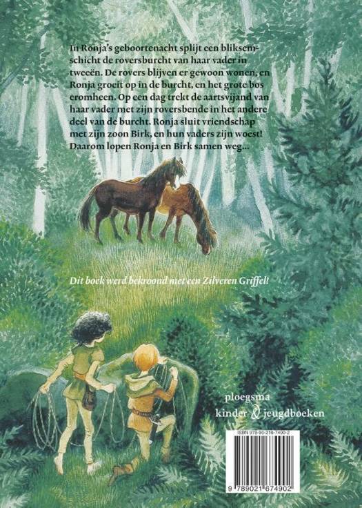 In Ronja's geboortenacht splijt een bliksemschicht de roversburcht van haar vader in tweeën. De rovers blijven er gewoon wonen, en Ronja groeit op in de burcht, en het grote bos eromheen. Op een dag ontdekt ze dat de aartsvijand van haar vader, Borka, met zijn roversbende in het andere deel van de burcht getrokken is. Ze sluit vriendschap met zijn zoon Birk, en als hun vaders daar kwaad om zijn, lopen ze weg en gaan ze samen in een grot in het bos wonen. Daar hebben ze een heerlijke zomer, maar waar moeten ze in de winter wonen? Het wordt steeds kouder...