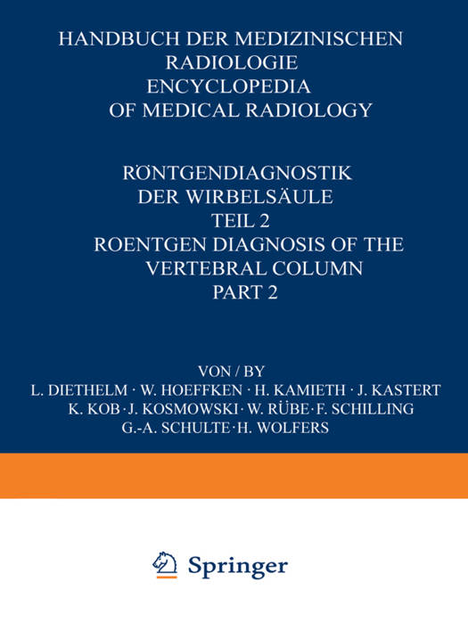 Unsere Kenntnisse der Wirbelsäulenerkrankungen und ihrer Darstellung im Rönt- genbild haben sich zwar in den letzten Jahrzehnten erheblich erweitert, doch sind nach wie vor noch widersprüchliche Auffassungen vorhanden, welche die Lücken unseres Wissens aufdecken. Es sei nur an die Genese der "Spondylolisthesis" oder an die Kontro- verse "persistierende Wirbelkörperepiphyse" - "vordere Kantenabtrennung" erinnert. Ein intensiveres Studium verdient aber auch die Genese der unspezifischen Spondyli- tiden - sowohl im Kindesalter als auch beim Erwachsenen -, wobei dem Nachweis der Grunderkrankung mit allen zur Verfügung stehenden Methoden eine besondere Bedeu- tung zukommt. Für die Spondylitis tuberculosa sind neue therapeutische Möglichkeiten durch die operative Behandlung eröffnet worden, deren Indikation und Folgezustände nur aufgrund großer eigener Erfahrungen von einem auf diesem Sektor besonders kompetenten Chirurgen dargestellt werden können. Die parasitären Erkrankungen können heute in den meisten Fällen richtig und früh- zeitiger erkannt werden. Hier darf von der zukünftigen Forschung eine Verbesserung der medikamentösen Behandlungsmöglichkeiten erwartet werden, zumal gewisse Ansätze schon heute sichtbar sind. Mainz, Dezember 1974 L. DIETHELM Preface Our knowledge of spinal diseases and their X-ray images has certainly been enormously extended in recent decades, however, there still exist contradictory opinions which merely serve to cover up the gaps in our knowledge. Two good examples would be the genesis of "spondylolisthesis", or ree the controversy surrounding "persistent vertebral epiphyses", and "vertebral body edge separation".