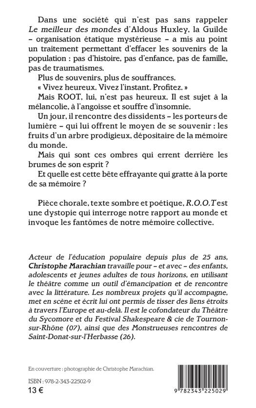 Dans une société qui n’est pas sans rappeler Le meilleur des mondes d’Aldous Huxley, la Guilde - organisation étatique mystérieuse - a mis au point un traitement permettant d’effacer les souvenirs de la population : pas d’histoire, pas d’enfance, pas de famille, pas de traumatismes. Plus de souvenirs, plus de souffrances. « Vivez heureux. Vivez l’instant. Profitez. » Mais ROOT, lui, n’est pas heureux. Il est sujet à la mélancolie, à l’angoisse et souffre d’insomnie. Un jour, il rencontre des dissidents - les porteurs de lumière - qui lui offrent le moyen de se souvenir : les fruits d’un arbre prodigieux, dépositaire de la mémoire du monde. Mais qui sont ces ombres qui errent derrière les brumes de son esprit ? Et quelle est cette bête effrayante qui gratte à la porte de sa mémoire ?
