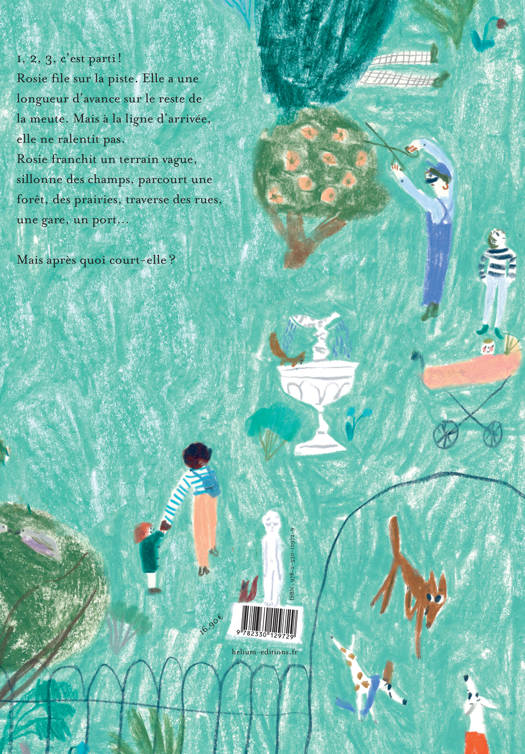 Rosie franchit un terrain vague, sillonne des champs, parcourt une forêt, des prairies, traverse des rues, une gare, un port...