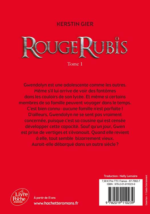 Gwendolyn est une adolescente comme les autres. Même s'il lui arrive de voir des fantômes dans les couloirs de son lycée. Et que certains membres de sa famille peuvent voyager dans le temps. Mais aucune famille n'est parfaite ! D'ailleurs, Gwendolyn ne se sent pas vraiment concernée. C'est sa cousine qui est censée développer cette capacité. Sauf qu'un jour, Gwen est prise de vertiges et s'évanouit. Quand elle revient à elle, tout semble bizarrement vieux autour d'elle. Comme si elle avait débarqué dans un autre siècle.