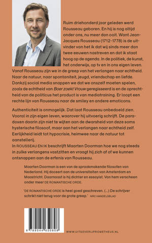 Authenticiteit is onmogelijk. Dat laat Rousseau onbedoeld zien. Vooral in zijn eigen leven, waarover hij uitvoerig schrijft. De paradoxen daarin zijn niet te wijten aan de dwarsheid van deze soms hysterische filosoof, maar aan het verlangen naar echtheid zelf. Eerlijkheid leidt tot hypocrisie, heimwee naar de natuur tot aanstellerij. In Rousseau en ik beschrijft Maarten Doorman hoe we nog steeds in zulke verlangens vastzitten en vraagt hij zich af of we kunnen ontsnappen aan de erfenis van Rousseau.