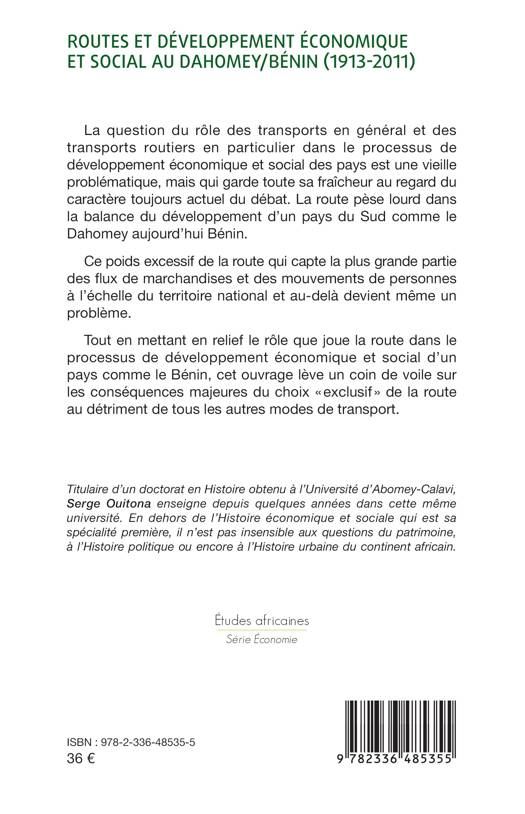 La question du rôle des transports en général et des transports routiers en particulier dans le processus de développement économique et social des pays est une vieille problématique, mais qui garde toute sa fraîcheur au regard du caractère toujours actuel du débat. La route pèse lourd dans la balance du développement d’un pays du Sud comme le Dahomey aujourd’hui Bénin. Ce poids excessif de la route qui capte la plus grande partie des flux de marchandises et des mouvements de personnes à l’échelle du territoire national et au-delà devient même un problème. Tout en mettant en relief le rôle que joue la route dans le processus de développement économique et social d’un pays comme le Bénin, cet ouvrage lève un coin de voile sur les conséquences majeures du choix « exclusif » de la route au détriment de tous les autres modes de transport.