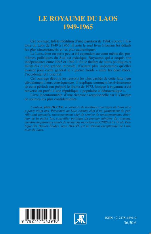 Cet ouvrage, fidèle réédition d'une parution de 1984, couvre l'histoire du Laos de 1949 à 1965. Le Laos, dont on parle peu, a été cependant au coeur même des problèmes politiques du Sud-est-asiatique Il fut le théâtre de luttes politiques et militaires d'une grande intensité. Le livre dévoile les ressorts les plus cachés de cette lutte, leur déroulement, leurs conséquences. Il explique comment les événements de cette période ont préparé le drame de 1975, lorsque le royaume a été renversé au profit d'une république "populaire démocratique".