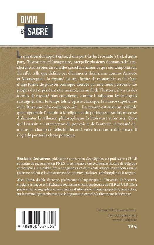 La question du rapport entre, d'une part, la/les royauté(s), et, d'autre part, l'historicité et l'imaginaire, interpelle plusieurs domaines de la recherche aussi bien au sein des sociétés anciennes que contemporaines. La royauté est un symbole qui ne cesse d'alimenter la réflexion philosophique, la littérature et les arts. Quoi qu'il en soit, à l'intersection du pouvoir et de l'autorité, la royauté demeure un champ de réflexion fécond, voire incontournable, lorsqu'il s'agit de penser la chose politique.