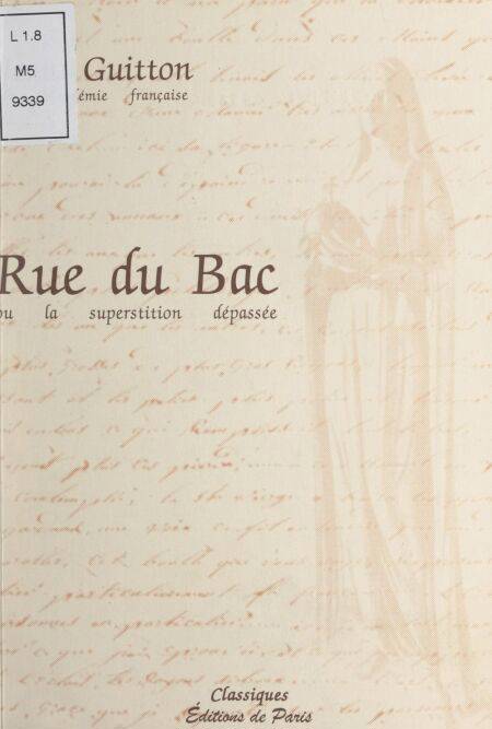 Cet ouvrage concerne Sainte Catherine Labouré, la médaille miraculeuse, et la rue du Bac. J’ai voulu donner à ce haut-lieu caché de Paris (et qui reçoit plus de visites que la Tour Eiffel), une nouvelle investiture : intellectuelle et spirituelle. Le phénomène de la rue du Bac, dans le langage de Saint Paul, eût été appelé prophétique. À tous les visiteurs venus de tous les continents, qui passent, qui prient et qui prieront au 140 de la rue du Bac. Pour qu’ils découvrent ce lieu comme des songeurs réalistes qui aiment monter des petites choses aux grandes et qui, surtout, acceptent de descendre hors des pensées sublimes jusqu’aux détails et aux images éphémères.