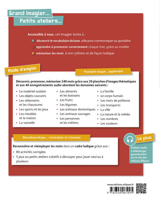 * 240 mots de base illustrés, regroupés en 20 planches d’images thématiques