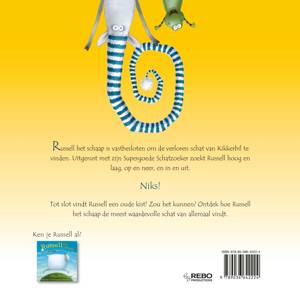 Russell het schaap is vastbesloten om de verloren schat van Kikkerbil te vinden. Uitgerust met zijn Super goede Schatzoeker zoekt Russell hoog en laag, op en neer, en in en uit. Niks! Tot slot vindt Russell een oude kist! Zou het kunnen? Ontdek hoe Russell het schaap de meest waardevolle schat van allemaal vindt.