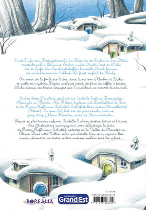 Ìn dr Tiafa vum Zwarigelerwàld, ìm Hüss vu dr Ambre un vum Mika versteckt sich a Gheimnis. Sither a pààr Nacht, hert dr Mika üss dr Tiafa vum Spielsàchakoffer, komischi Krach komma, wo na bahìndera àm Schloof. Ar fìndt einfàch ke Rüahj. Au coeur de la forêt des lutins, dans la maison d’Ambre et Mika se cache un mystère. Depuis quelques nuits, du fond du coffre à jouets, Mika entend des bruits étranges qui l’empêchent de trouver le sommeil. Sither ihrer Kìndheit, zeichnet die Isabelle Salmon Zwarigeler, Mannala un Wiwala. Ìhri Bìlder bagleita mìt Zàrtlichkeit dr Text vu dr Karen Hoffmann-Schickel, Schrìftstellera üssem Mìnschtertàl (Elsàss). Ìn dam Tàl, kàt dar wo güat süacht, dàto nà, gànz wunzig kleini Hisseler, unter da Beim entdecka... Depuis sa plus tendre enfance, Isabelle Salmon dessine lutins et lutines. Ses illustrations accompagnent avec délicatesse le texte de Karen Hoffmann-Schickel, auteure de la Vallée de Munster en Alsace. Dans cette Vallée, celui qui cherche bien peut, aujourd’hui encore, découvrir de toutes petites maisons cachées sous les arbres...