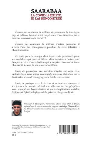 Comme des centaines de milliers de personnes de tous âges, pays et cultures, l'auteur a fait l'expérience d'une infection par le nouveau coronavirus, la covid-19. Comme des centaines de milliers d'autres personnes il a vécu l'une des conséquences possibles de cette infection : l'hospitalisation. Envie de poursuivre une décision d'écrire sur cette crise sanitaire bien avant d'être contaminé, non sans hésitation sur la destination d'un tel témoignage une fois le texte achevé. Envie de partager avec le lecteur et surtout les hommes et les femmes du monde médical une réflexion sur les péripéties ayant marqué son hospitalisation et sur les implications sociales, éthiques et épistémologiques de la prise en charge médicale.