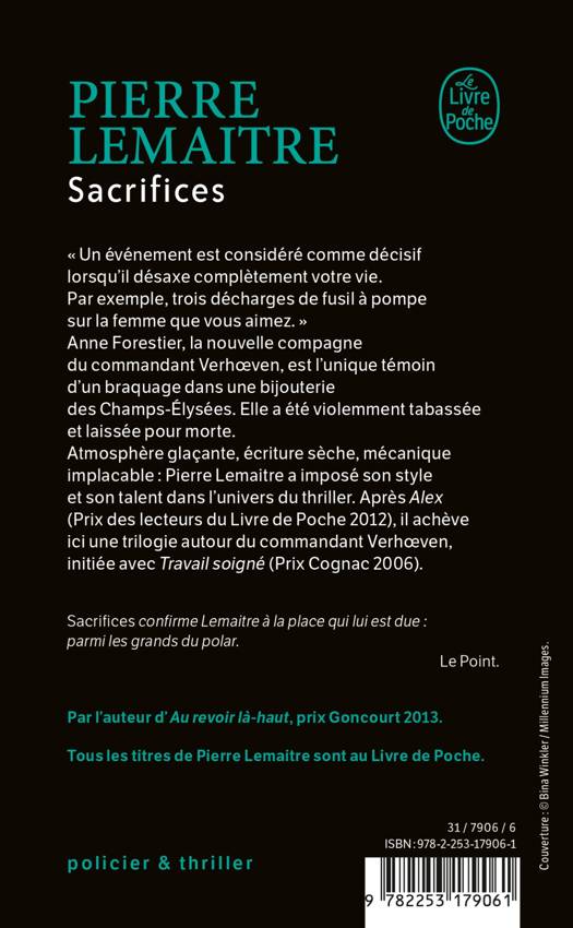 « Un événement est considéré comme décisif lorsqu'il désaxe complètement votre vie. Par exemple, trois décharges de fusil à pompe sur la femme que vous aimez. » Anne Forestier, la nouvelle compagne du commandant Verhoeven, est l’unique témoin d’un braquage dans une bijouterie des Champs-Elysées. Elle a été violemment tabassée et laissée pour morte. Atmosphère glaçante, écriture sèche, mécanique implacable : Pierre Lemaitre a imposé son style et son talent dans l'univers du thriller. Après Alex, il achève ici une trilogie autour du commandant Verhoeven, initiée avec Travail soigné. Par l’auteur de Au revoir là-haut, prix Goncourt 2013.