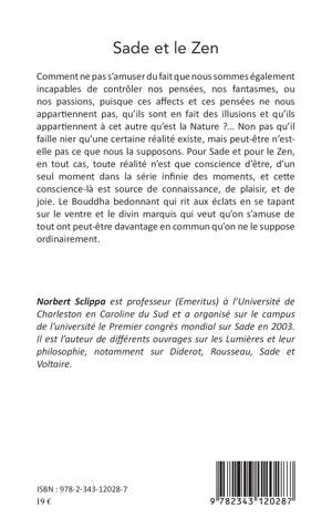 Sade et le Zen ont en commun une même conception de l'objet en tant qu'entité séparée de la conscience, conception pour laquelle la notion de vide joue un rôle déterminant. Le Zen cependant ignore systématiquement toutes les connotations affectives et morales de l'objet, que le monisme de Sade inclut et explique, ce qui fait de l'oeuvre de Sade un complément essentiel du Zen.