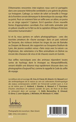 D’étonnantes rencontres inter-espèces nous sont ici partagées dans une caravane hétéroclite semblable à une galerie de photos sur Instagram. La notion de safari se brouille à l’image de la frontière censée démarquer le domestique du sauvage. Mise au point. Peut-on vraiment faire un selfie avec un zèbre, un puma ou un singe capucin ? Capture. Est-il question d’une nouvelle forme d’appropriation cannibale d’un méli-mélo animalier jeté en pâture visuelle sur le Net ou de la captation éthique d’intenses rencontres humanimales ?