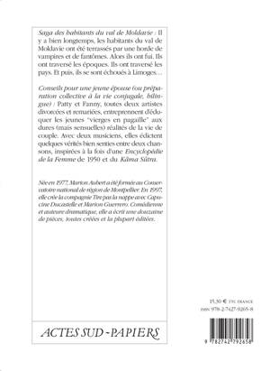 "«Conseils pour une jeune épouse"» : ce court texte bilingue est une pseudo "préparation collective à la vie conjugale" qui dynamite les sages préceptes de "L'Encyclopédie de la Femme 1950" avec des extraits drôlement choisis du "Kama Sutra".